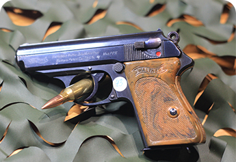 德国经典的半自动手枪,因其独特的外观和精准的射击性能而闻名。它广泛用于一战和二战期间,被视为军事历史中的传奇武器。图中此枪为本司收购的前某军官藏品,镀金配件+象牙握把贴片